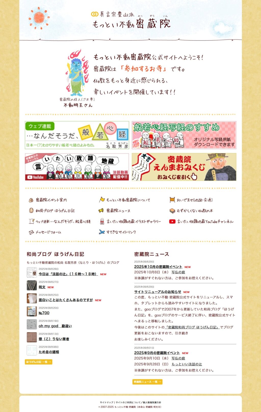 この度、もっとい不動 密蔵院公式サイトをリニューアルし、スマホ、タブレットからも読みやすいサイトになりました。