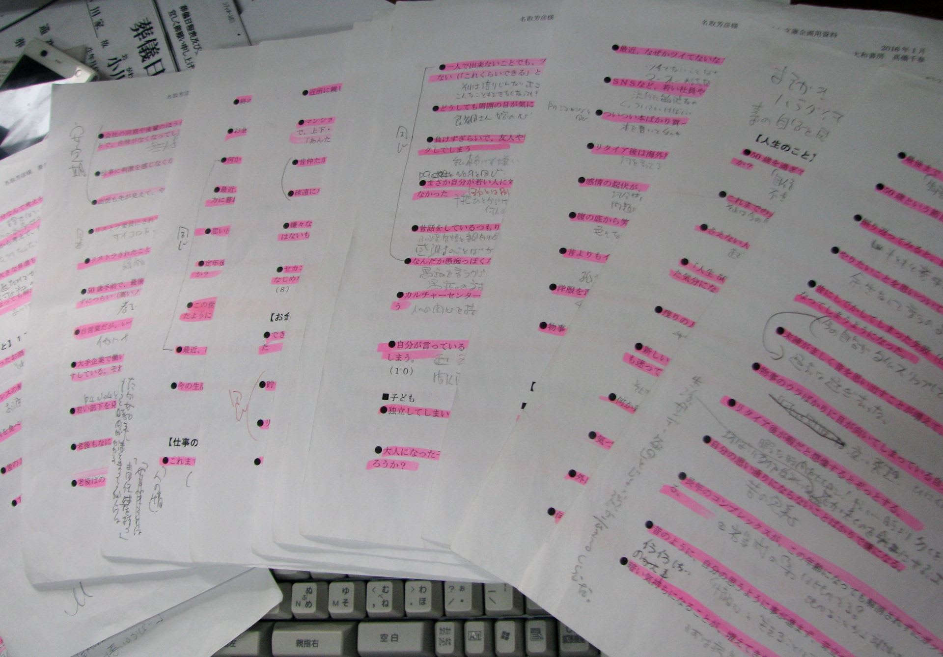 一週間前に「残り27項目をゴールデンウィーク中にやっつけてしまおうか」と書いたのだが、一心不乱に書いていたら今日終わってしまった。あはは。この先、三度ほど読み直さないとまっとうな文章にならないが、それでもヤッターマンになった気分(こういう時にヤッターマンって使っていいのか?)。最初の頃は紙の上にすーっと載っていたマーカーのインク。その紙が今日は鼻がかめそうなほ柔らかくなり、書き終えた項目にマーカーをすると、インクがジワッと染み込むようになった。