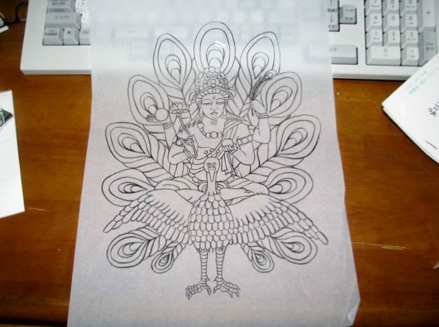 友人に清書を頼んだ写仏のお手本。見事に写してくれた。しかし、私の渡した下絵三点がまずかった。きれいに書いてくれたのでなおさらそれが目立つのだ。ぐはは。とにかく目鼻口のバランスがよろしくない。私は絵描きではないけれど、やれるところまでは直したいと思い、今日も夜なべである。もう。羽を描くのは嫌だ。