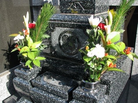 家の大掃除が終わったのだろう。お墓参りの方が多い今日の大晦日。墓前の花も松や千両が入ったお正月バージョンだ。「おもてなし」と「おかげさま」の思いを花に託して先祖に手向けて年を締めくくる(年が開けて松の内の間にお参りにいらっしゃる方もいる)。小さな節目かもしれないが、その積み重ねが竹のようにしなやかでのびのびした人生に繋がっていくのだなと思う。空を仰げば青い空に一筋の飛行機雲が伸びていたが、少しすると他の雲と見分けがつかない。それぞれが人生を突っ走ってきたこの一年だが、たしかな実績として人生の中に溶け込んでいくのだろう。良いお年をお迎えください。