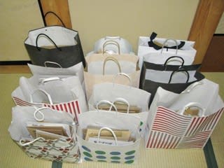 客殿を作業場にしていると明後日の法事で使えないから慌てて袋詰めした。50種の言葉×12枚(写真)。単純に考えれば12のお寺に段ボール地蔵が50種類1セットになって旅立つことになる(写真。お寺によっては2セット行くこともあるから、単純に考えてはイケナイ)。それぞれのお寺でどのように使われるかは与(あずか)り知らぬが、愉快に立ち回ってくださるじゃろう。むはは。