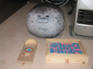 副住職が買った大阪海遊館のアザラシぬいぐるみ(写真。自分に雰囲気が似ているから触手が動いたのだろう)。自分用なのかと思ったら玄関に置いた。お寺に来た子どもに喜んでもらえるだろうと嬉しそうに言っている。ふわふわである。先日私が買ったゲーム二つ(写真)が加わり、密蔵院の玄関はまるで保育園のおもちゃ箱である。ぐはは。