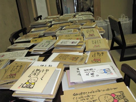 暇を見つけて書いている段ボール地蔵だが、終盤に近づいてきて、あらためてこの光景(写真:文字入れ前の段ボール地蔵群と文字入れ終了の地蔵群)を見て、なにかに似ている・・・と思った。そっか、お店である。私はお店で働いて、商品を並べているのだとわかった。わはは。ただし、売りものではありません。※「言いたい放題地蔵」ハガキもれなく1枚無料プレゼントは、当初の総数200枚枠をなくして5月6日まで継続します。つまり、応募者全員に必ず1枚届くということでございます。詳しくは昨日(4月28日)のブログでどうぞ。