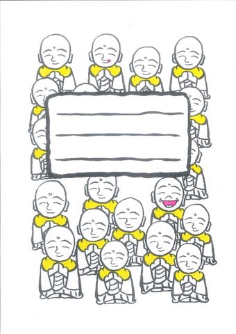 お不動さまの塗り絵を送っていただくようになってから(7月29日のブログを参照)、「色鉛筆の使用目的は何だろう」と考えた。何十色もの色鉛筆セットの使い道は「塗り絵」くらいしか思い浮かばない(もちろん「投げる」とか「浮かべる」とか「箸がわりに使う」などの使い方は知っている)。今の所の結論は、「塗り絵のためだけに、あの魅力的な何十色セットの色鉛筆がある」である。ならば、お地蔵さまにも一役買っていただこうと原画を二種類書いた。写真は衣を黒く塗り、アブチャンを色とりどりにしたもの。もう一つは子供たちが自粛中で会えないおじいちゃんやおばあちゃんにメッセージを書ける枠を入れた塗り絵である(写真は黄色一色バージョン)。何も塗っていない線画を下記からダウンロードしてお楽しみください。