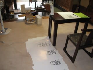 「あれ?住職、今日はそんな所に?」と言われるから「玄関番です」と答える。マッチ売りの少女ならぬ、線香点けの坊主である。マッチの少女のような悲惨な結末はないが、調子に乗って、もらった廃棄予定ポスター600枚を半分に切ってしまったので、1200枚の掲示板用の紙が出現した(写真)。あわわ。お線香点けの合間に、裏面にお地蔵さまを描いていく(写真)。家内と二人の玄関番、密蔵院、彼岸の風物詩である。