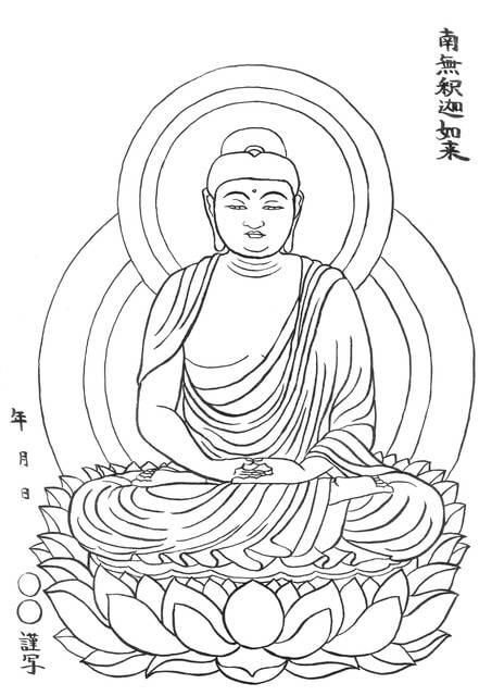 去年の暮れあたりから、家内は観自在になって、毎週掲示板に貼る「なぞなぞ」の「お寺で作ると失敗してしまうケーキはなあに?」という問題も、すぐに「ティラ(寺)ミス」なーんて答えられるようになってきた。老後をともにする夫として頼もしいかぎりである。ぐはは。その家内が「せっかく生花をたくさん使う花見堂(写真)を作るんだから、7日から9日まで飾ろうよ」と言い出した。すごい!今日は「写仏」の日だから、参加者にもお釈迦さまの誕生祝いをしてもらい、甘茶も飲んでもらえる。写仏のお手本は、もちろんお釈迦さまである(写真)。