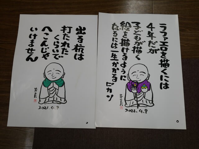 ご主人の一周忌には、最小限の人数でも偲ぶ時間がほしいという奥さま(母)の願いを聞き届けたいと子どもたちは、法事の後座を客殿に設(しつら)えた。使った後のパーテーションは密蔵院に奉納してくださった(写真)。ありがたいことである。加えて、15日ぶりに掲示板の言葉を替えた(写真)。春なのに、コロナ関連の言葉にはアキアキ(秋々)したので、通常モードの言葉選びになった。ぐはは。