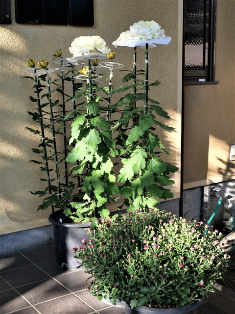 菊作りをしている檀家さんが、玄関用にほぼ一年間丹精込めた菊を持ってきて飾ってくれた。お参りにいらっしゃった方々を秋の彩りで迎えてくれる。これも一つの供え花である。