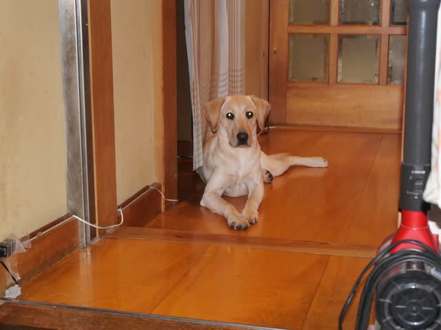 家内が家を出ていってから二日経過した。私が悪かったと思うが、肝心の、謝罪する相手がいない。家内がいないから、犬が私から離れない。私がドアの向こうに行くと、ドアを引っ掻き鳴く。仕方がないから台所のテーブルで仕事をするのだが、玄関でピンポーンと鳴れば私は出ていく、犬は残る。台所に戻ると仕事の資料が、ボールペンが、食い散らかされている・・・。家内が奈良から帰ってくるのは午後10時過ぎだろう。それまで寝ることもできぬ。ぎゃはは。
