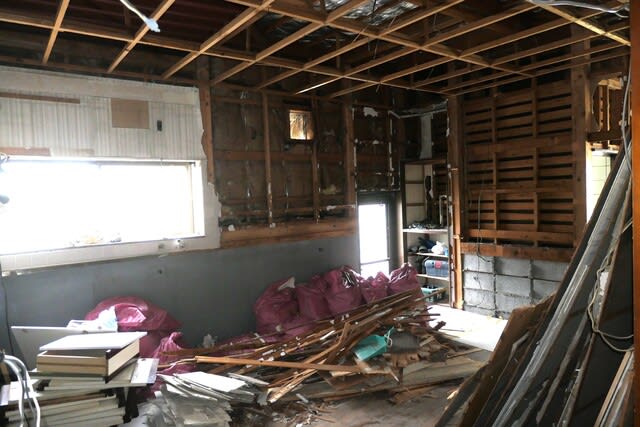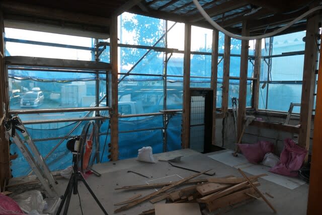 リフォームに向けた解体作業はすべて手作業だ。猛暑の中で本当に大変だと思う。先月九日から今日までの3ショットです。