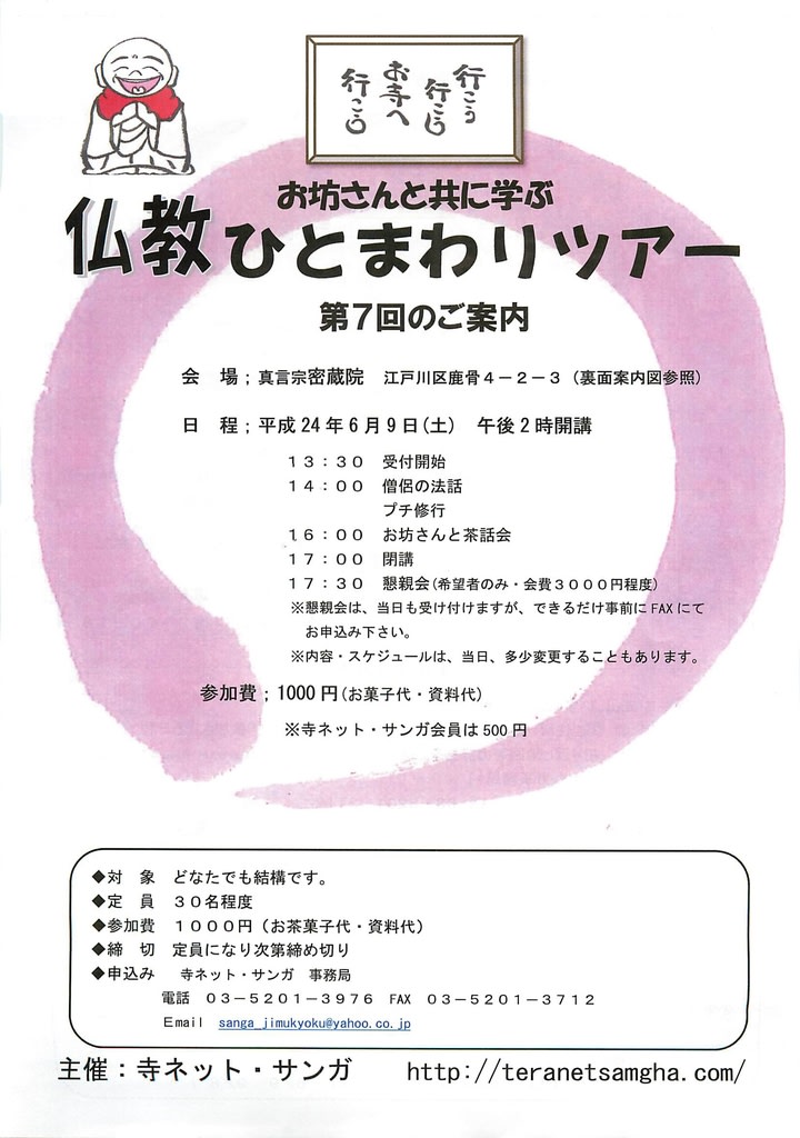 今日の午後は、寺ネット・サンガ企画「仏教ひとまわりツアー」in 密蔵院。さまざまな宗派のお寺へ行って、仏教のプチ修行体験をしてみようではないか。そして、なんだかよくわからない仏教を、感じ、考えてみようではないの。