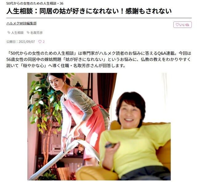 ハルメクウェブの9月の人生相談は、人類永遠の嫁姑問題。https://halmek.co.jp/life/c/tips/ ...