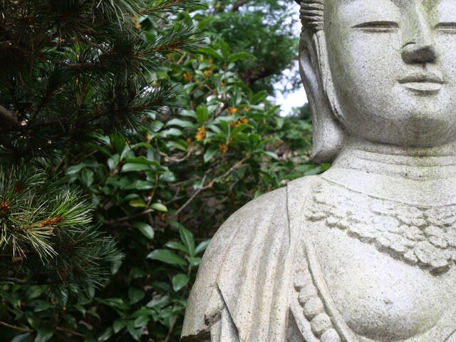 香りと姿で、秋のお彼岸に彩りを添える金木犀(写真・石像左奥)と彼岸花。順調に成長して、玄関あたりは金木犀の香りがする。こ ...