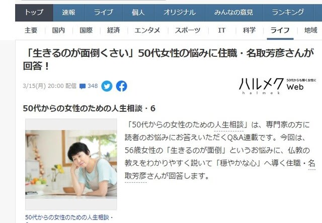 今日からお彼岸。密を避けているわけではないだろうが、檀家さんたちがほどよい間隔でお墓お参りにいらっしゃる。で、『ハルメク ...
