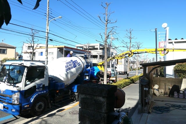 庫裏のリフォームにあたってほとんどの排水場所が変わったので、周囲は掘り返されていた。今日はその埋め戻し作業のためのコンク ...