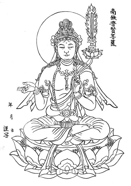 今日は「写仏の庭」(13時~/19時~)。今回、筆を通して心にダウンロードしていただくのは慈悲を象徴する普賢菩薩。象に載 ...