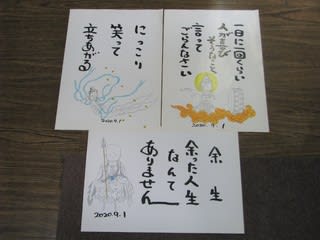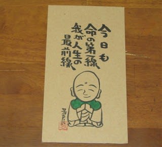 段ボール地蔵の密蔵院居残り組みの数が少なくなったので、時間を見つけて補充している。今朝一番で12枚書いたのは『今日も 命 ...