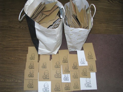 ザックリ切った段ボールが大量にたまったので、お地蔵さまを描けるようにきれいにカットした。6時間かけて紙袋2つ分(300枚 ...