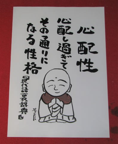 在庫の段ボール地蔵の言葉の種類に偏りがあるので、バランスを取るために十数種類書き足した(写真)。私にとって100枚くらい ...