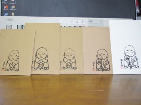 段ボールの箱やら、お菓子の箱をカッターで切るのはそう難しくない。大変なのは、それを、お地蔵さまが描けて、人さまに差し上げ ...