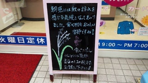鍼灸院へ行くためにクリーニング屋さんの前を通ると、表の看板にブルーのチョークで書かれた言葉。「朝晩には秋の訪れを感じる気 ...