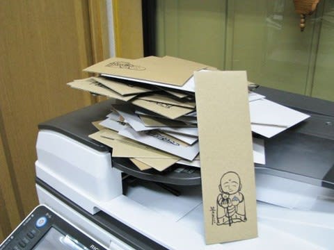 午後の講演会を挟んだ午前中と午後と夜に原稿を直して、文字を読むのに疲れたら、ヨダレカケに色を入れようとコピー機の上に積み ...