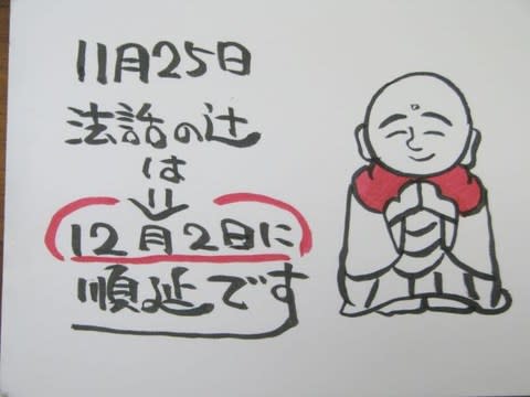 11月25日の「法話の辻」、日程変更のお知らせ。