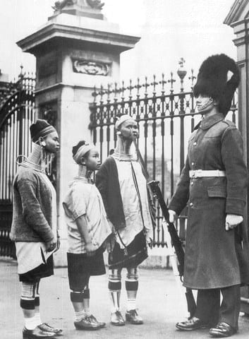 下の写真のキャプションにこうある--タイのパダウン族の三人の女性は、近衛兵と白黒つけるのをやめることにした。--あはは。 ...