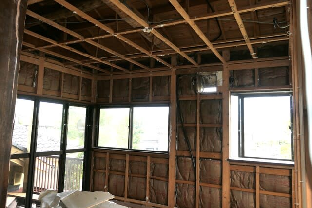 リフォームに向けた解体作業はすべて手作業だ。猛暑の中で本当に大変だと思う。先月九日から今日までの3ショットです。