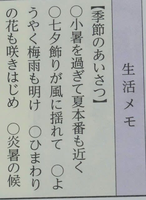 暦を見ていたら、7月の時候の挨拶の中に「炎暑の候」があった。使ったことがない言葉だが、まさに「炎暑」の日々。「猛暑はモウ ...