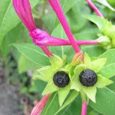 オシロイ花がたくさん花開いて、咲き終わった順から黒い実をつけている。小学校の時は通学途中で実を取って割り、鼻筋に白い粉を ...