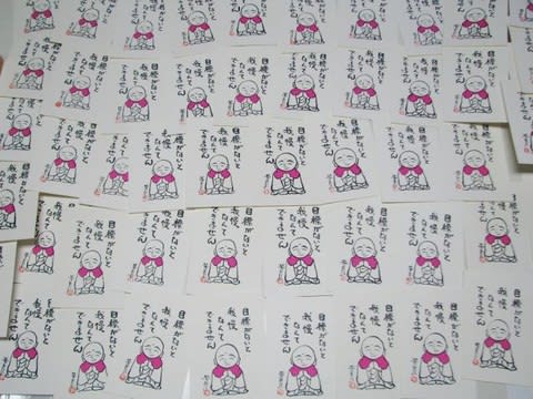 わけあって50枚同じ言葉を書かねばならない。お地蔵さまも手描きだから、大変だが、いい時間だった。あと8種類400枚だ。い ...