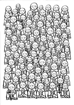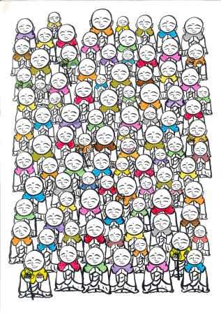 で、色を入れて、出来上がり。数えたら95人のお地蔵さまだった。目がとっても疲れた。ぎゃはははは。
