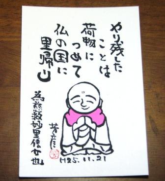 今日の午前中は1日の集まりのためにお地蔵さまの色紙を30枚認(したた)め、午後は雑誌『サイゾー』1月号の特集の取材を受け ...