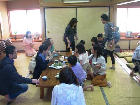 「子供のための朗読の会 」の休憩風景。 柏餅やお煎餅やジュースは、声優さんたちがお金を出し合って用意してくれた ...