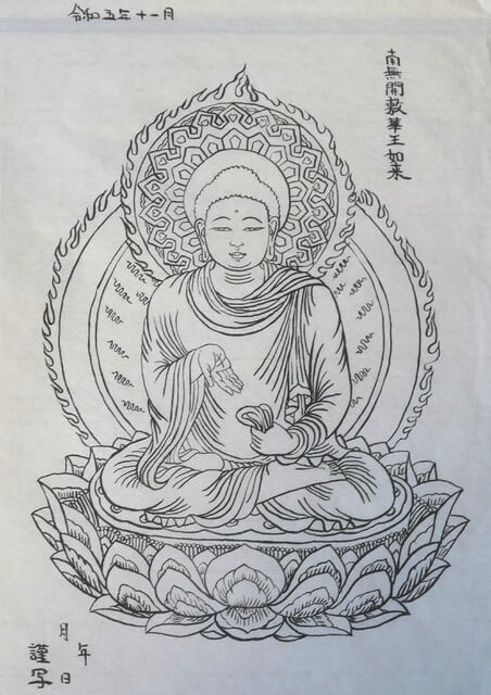今日の密蔵院は「写仏の庭」(13時~/19時~)で、お手本は、開敷(かいふ)華王(けおう)如来(にょらい)。[蒔いた種が ...
