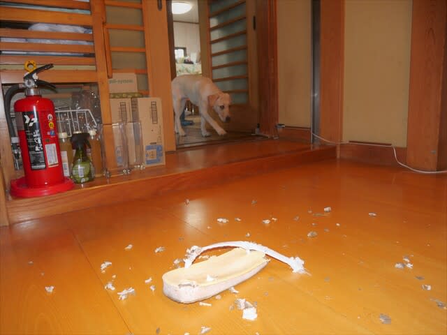 もはや、噛み始めた本人(犬)でも興味がないらしい・・・。犬のいる家で何気なく置いた雪駄の成れの果てである(写真)。わはは ...