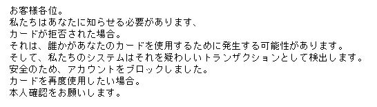 帰宅してメールを開くと、フィッシングメールが届いていた。普通なら、即迷惑メール行きだが、今回の文章は(句読点も含めて)、 ...