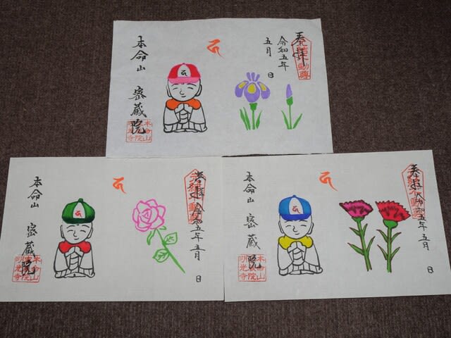 「子どもの日」が過ぎたので、御朱印の兜と鯉のぼりバージョンは終了。ご朱印書きは勝ち負けではないけれど、月末まではこの花で ...
