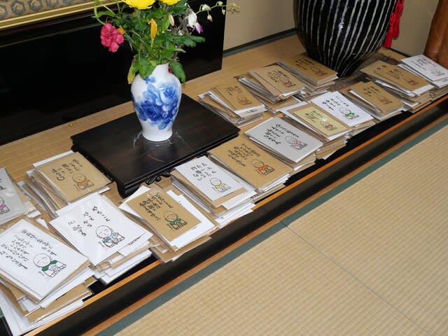 写真の段ボール地蔵の一山はすべて同じ言葉で全17種類、400枚ほどある。すべて手描きで、講演会の参加者用のお土産である( ...