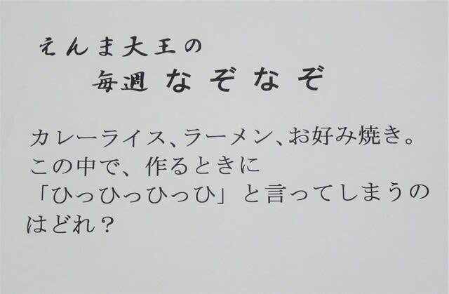 日曜の今日、16時になったので、歩道に面した掲示板の「なぞなぞ」張り替えの時間。このなぞなぞの答えを、今日の夕飯で食べる ...
