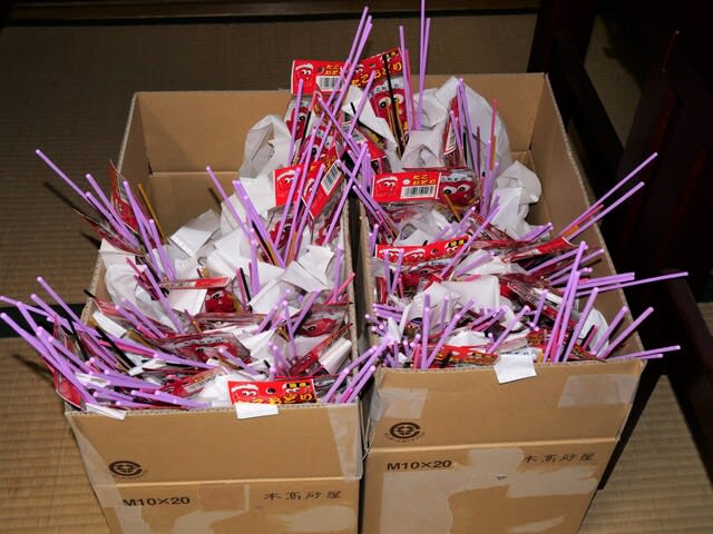 お盆にお墓参りにくる小学生以下の子どもたち用の花火(12種類入・100セット)の袋詰めをおえて(写真)からの法話動画の収 ...