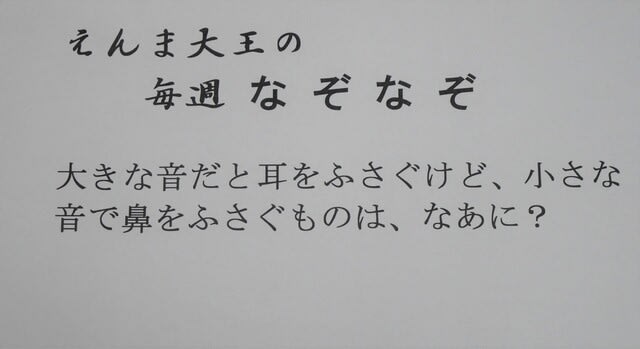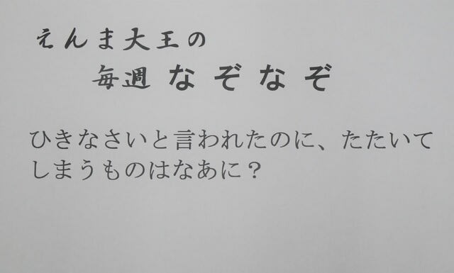 めずらしくと言っては申し訳ないが、家内が正解を即答した今週の「なぞなぞ」(写真)。冒頭の「ひきなさい」でラインを乗り違え ...