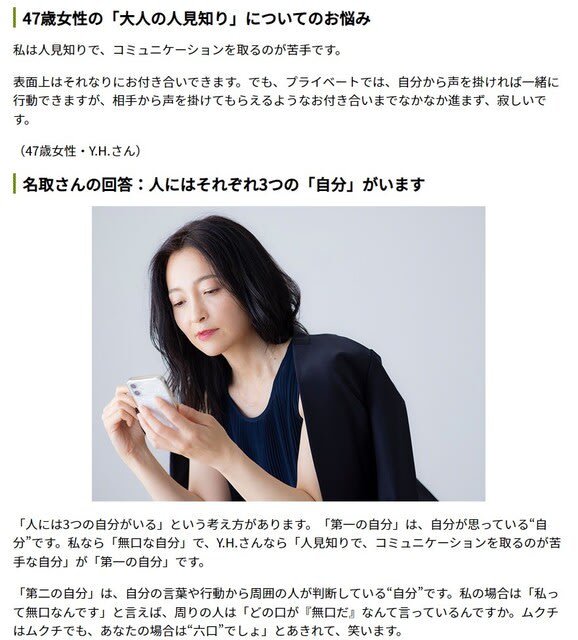 今月の『ハルメク』ウェブの人生相談は「人見知りをどうにかしたい」という悩み。去年の一月からこのコーナーを担当させてもらっ ...
