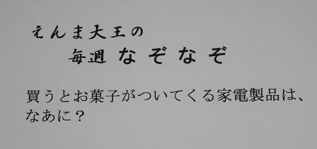 「買うとお菓子がついてくる家電製品って、なあに?」は先週の月曜日に掲示板に貼った「なぞなぞ」(ブログでもご紹介した)。そ ...